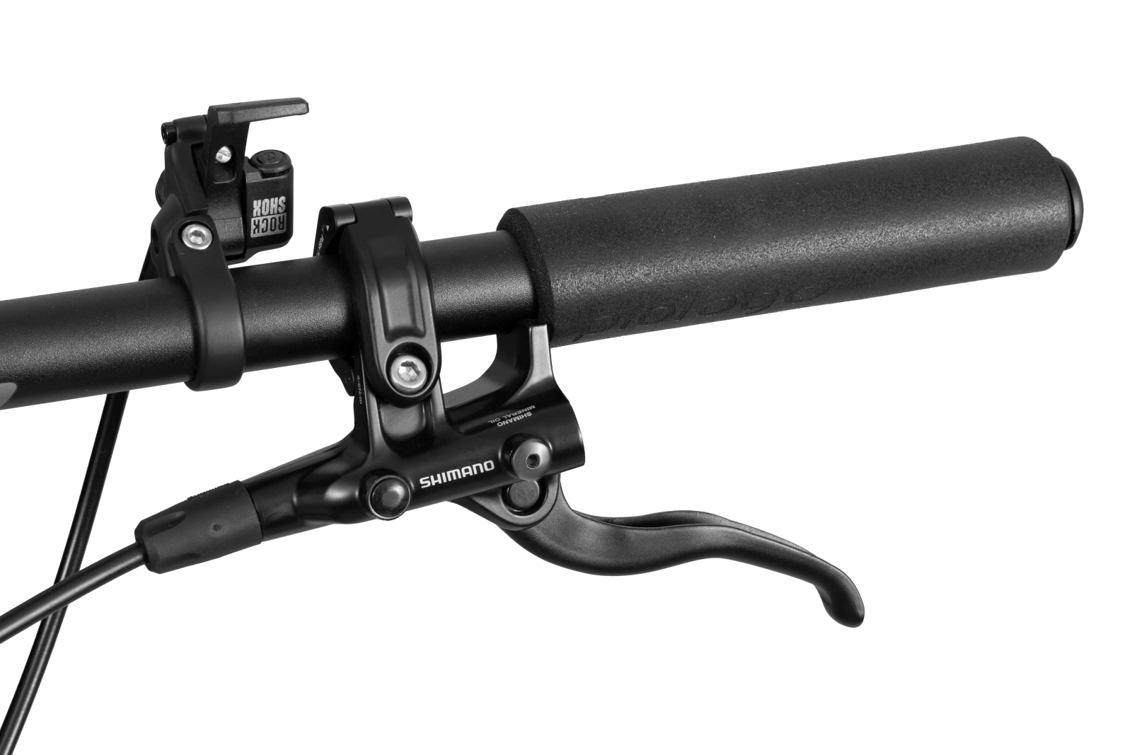 A suspensão RockShox Judy Silver com trava remota e o selim Prologo oferecem conforto e eficiência