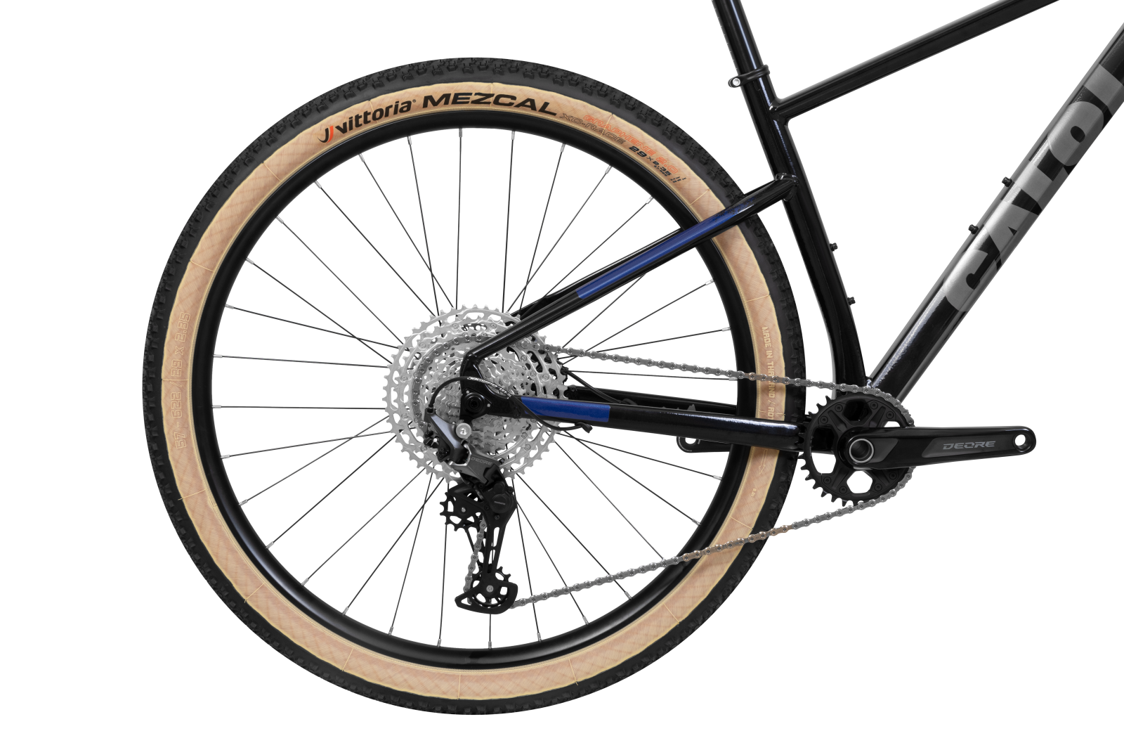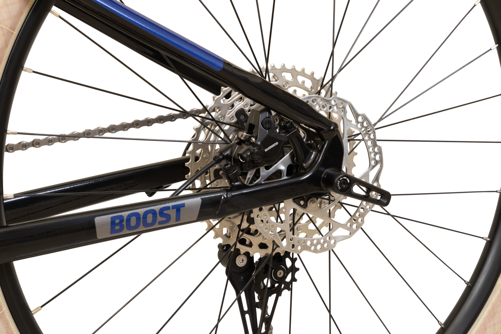 Grupo Shimano Deore de 12 velocidades: O câmbio Deore de 12 velocidades e os cubos TC500 asseguram precisão, suavidade e ótima rolagem.